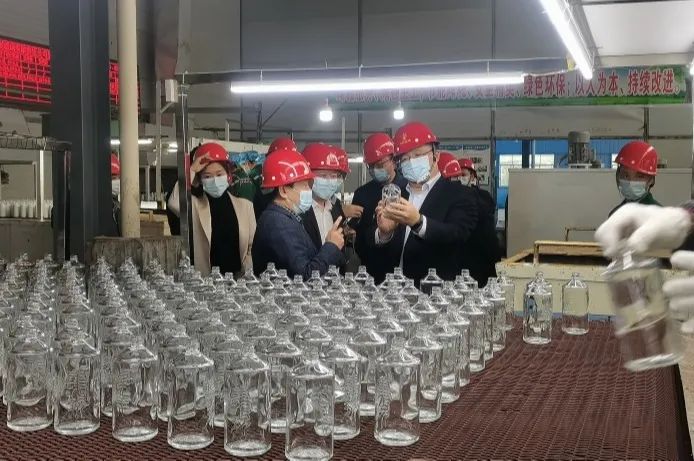 吴总及陆书记一行在黄总、薛总的陪同下,依次参观了制瓶、检验、深加工车间,黄总向领导们详细介绍了首创公司的生产规模、工艺技术、产值税收、安全环保、经营发展等方面的现状及规划。还具体介绍了首创公司高白料窑炉生产线的生产情况。
